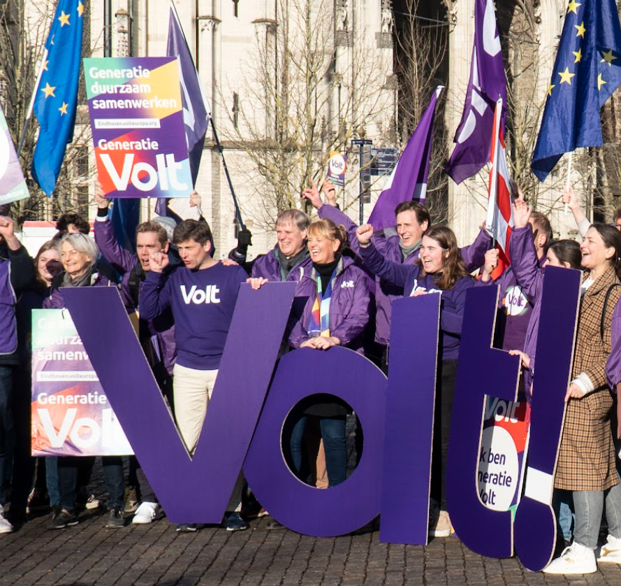 Volt wants to build a world with more balance. Purple is the perfect color for this. It is a mix of red (a warm and strong color) and blue (a calm and smart color). Purple can feel both peaceful and full of energy – just what we need in these busy political times.