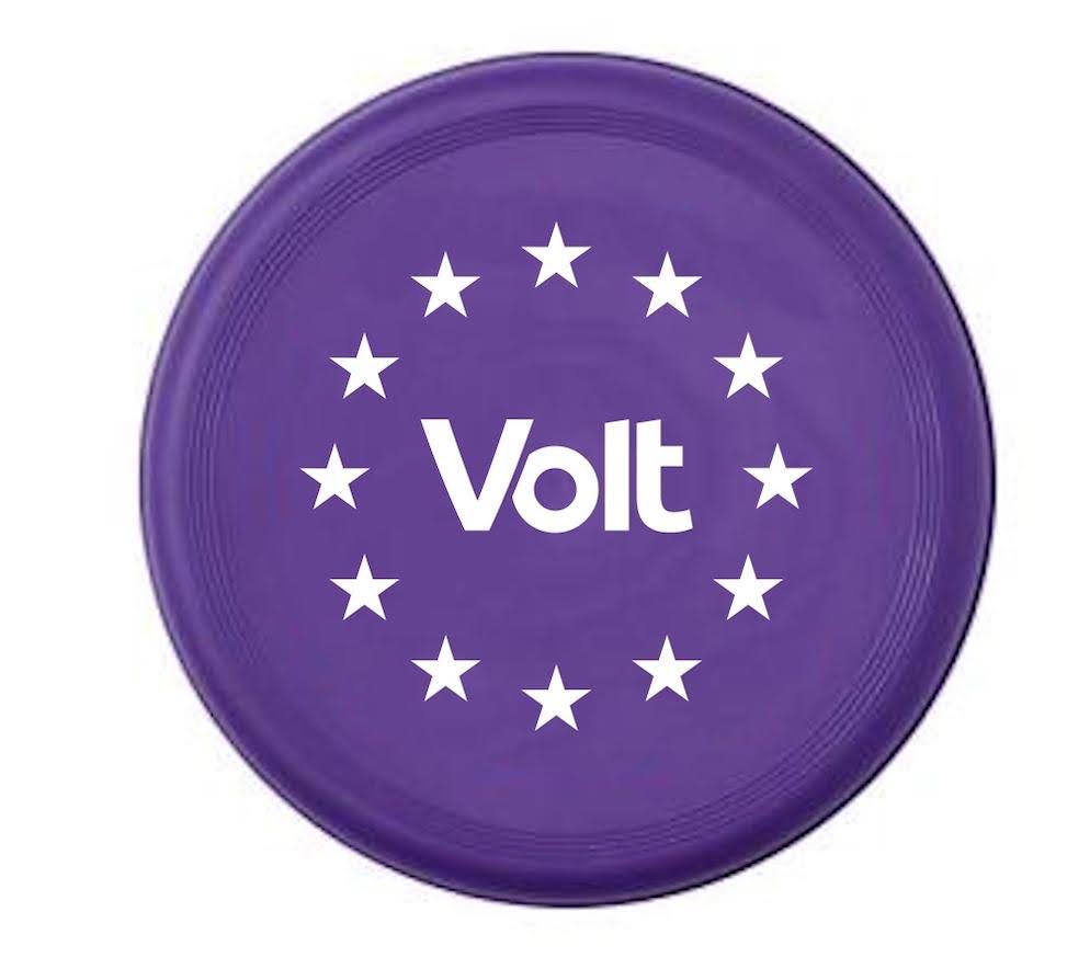 Purple frisbee with Volt logo and stars